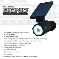 BELL + HOWELL Bionic spotlight 250-Lumen 4-Watt Black Low Voltage Solar LED Spot Light Motion Sensor for Patio, Yard, Garden Outdoor Lighting As Seen On TV, Black