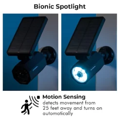 DON’T GET STUCK IN THE DARK. Bionic Spotlight is the solar-powered light that turns on automatically when it detects motion, up to 25 ft. away. Best of all Bionic Spotlight does not require wiring or batteries, so you save money. Just place your Bionic Spotlight where the solar panel can soak up the sun. The solar panel then collects the suns energy and charges it. The Bionic Spotlight also has eight high intensity LED light that can cover an entire area over 600 sq. ft., and stays on until no motion is detected. Bionic Spotlight is year-round durable and weather resistant. Bionic Spotlight is backed up by a 5-year manufacturer warranty.