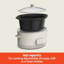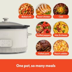 Elevate your cooking with our 6-quart Programmable Slow Cooker, designed for both convenience and style. With pre-set options for 4, 6, 8, and 10-hour cook times, you can effortlessly plan and prepare meals ahead of time. Whether you’re slow-cooking a fragrant Thai green curry, a rich beef bourguignon, or a vibrant Moroccan tagine, the three heat settings of our portable crock pot—low, high, and warm—allow you to cook at the perfect temperature every time. When the cooking is done, the large slow cooker automatically switches to the warm setting, ensuring your meal is perfectly ready when you are.