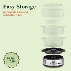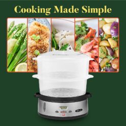 - HEALTHY FOOD STEAMER: With 9.5 quarts of cooking capacity & 3 separate BPA-Free steaming containers, you can cook a full meal with sides with one simple turn of a switch. Features auto shutoff & boil dry protection for simple & safe cooking.