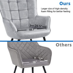 This armchair is made from high-quality faux leather and a sturdy metal frame. The spacious sitting area and high backrest provide ample support, making this accent chair the perfect place to cozy up after a long day. The slightly curved, brown wingback contrasts beautifully with the straight tapered legs. This gives the chair a contemporary yet modern look, allowing it to blend in perfectly with any home decor. This chic accent chair could work in any living room, bedroom, den, or home office. The stitching on the back is detailed and sleek, adding to the elegant look of the chair. Simple assembly is required and detailed instructions are included.