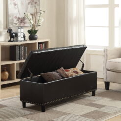 Storage and organization become easy with this ottoman. Simply lift the lid that reveals a spacious storage spot to keep all your items. Safety hinges keep the lid open until you’ve put away all items and are ready to close them, improving safety and preventing injury to your fingers from accidental slamming.