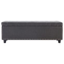 Belleze 48″ Rectangular Linen Storage Ottoman Bench Footrest, Large, Dark Grey