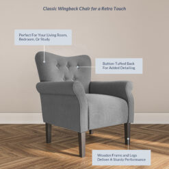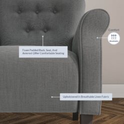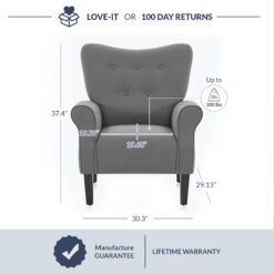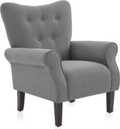 From providing sensible seating arrangements in smaller spaces to rounding out your decor in supreme style, this accent chair makes an all-star addition to your home. It’s a classic blend of a modern silhouette with traditional design elements, giving it charming retro vibes that go well with almost decor theme. The high backrest with padded arms and deep cushioned seat offers a timeless touch, while the trendy gray fabric upholstery adds refined style and sophistication with a very contemporary vibe. The neutral gray shade blends well with most color palettes, making it a versatile lounge chair to complement your decor.