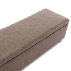 - Wrapped in luxurious faux leather upholstery. Feels soft and comfortable to sit on. Three stitched rectangular panels on the top of the bench add texture and pattern.
