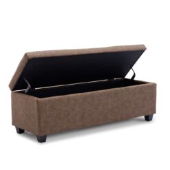 Looking to de-clutter the space with some extra storage? This ottoman is the perfect solution. It offers spacious storage, simply open its hinged lid to stash throw blankets, board games, out-of-season decorative pillows, and more. The interior space of this ottoman is both large and secure. The hinged safety stop ensures that once lifted, the lid will stay open until placed back. Easy to assemble with all hardware and instructions included as part of the package. Overall dimensions include 46.85″(W) x 16.54″(D) x 16.34″(H).