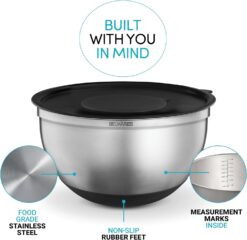 - ALL-IN-ONE PREP BOWLS – Bake, grate, mix, lift, pour, cover and store. We even added measurement marks inside. Both bowl with lid are BPA, PVC, lead and phthalate free.