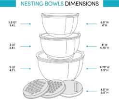 - EASY TO CLEAN / NESTS – Stainless steel mixing bowl sets are super easy to clean by hand. The bowls are dishwasher safe too (not the lids). Now that they’re washed, you want them neatly out of the way. No problem, these kitchen bowls stack perfectly.