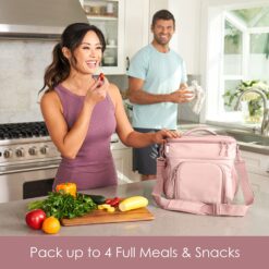 Bentgo® Prep Deluxe Multimeal Bag – Premium Insulation up to 8 Hrs with Water-Resistant Exterior & Interior, Extra Large Lunch Bag Holds 4 Meals & Snacks – Great for All Day Meal Prep (Blush)