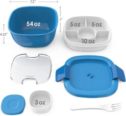 - EXTRA-LARGE SALAD CONTAINER: Spacious 54 oz salad bowl to go – fits up to 4 cups of healthy fruits and vegetables (with the compartment tray inserted).