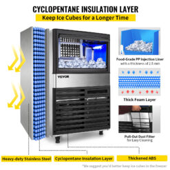 Product Description Commercial Ice Maker 132 lbs High Yield & Food-grade PP Liner & Crystal Clear Ice 132 lbs Ice Yield per Day