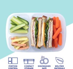 - BUILT-IN PORTION CONTROL: 3 perfectly portioned compartments make it easy to pack a balanced meal for any size appetite from kids to adults