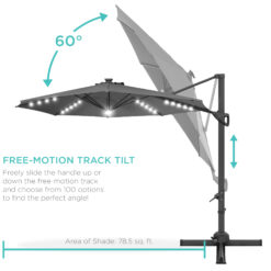 Best Choice Products 10ft 360-Degree Solar LED Cantilever Patio Umbrella, Outdoor Hanging Shade w/ Lights – Gray