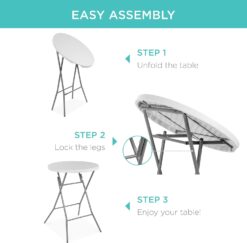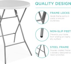 Best Choice Products 32in Bar Height Folding Table, Round Indoor Outdoor Accessory for Patio, Backyard, Dining Room, Events w/Thick Table Top, Metal Frame, Locking Legs, 330lb Weight Capacity - White