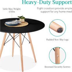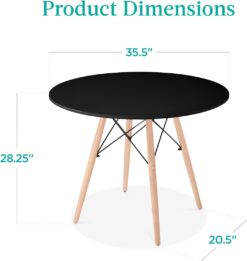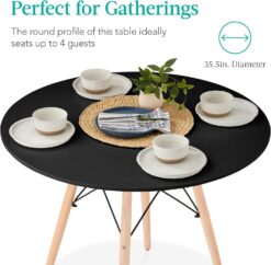 Best Choice Products 35.5in Round Dining Table, Compact Mid-Century Modern Table for 2-4, Home, Kitchen, Apartment w/Beech Wood Legs, Metal Frame – Black