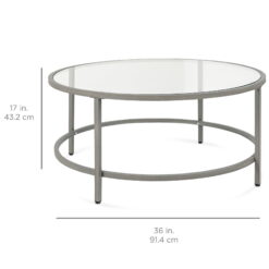 Best Choice Products 36in Round Tempered Glass Coffee Table for Home, Living Room, Dining Room – Gray