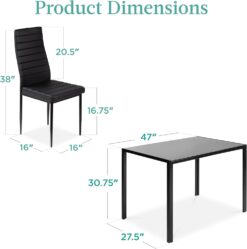 Best Choice Products 5-Piece Kitchen Dining Table Set for Dining Room, Kitchen, Dinette, Compact Space w/Glass Tabletop, 4 Faux Leather Metal Frame Chairs – Black