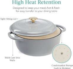 Best Choice Products 6 Quart Enamel Cast-Iron Round Dutch Oven, Family Style Heavy-Duty Pre-Seasoned Cookware for Home, Kitchen, Dining Room, Oven Safe w/Lid, Dual Handles – French Gray