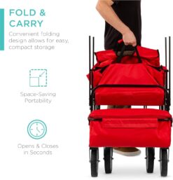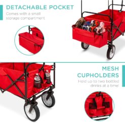 Best Choice Products Collapsible Folding Outdoor Utility Wagon with Canopy Garden Cart for Beach, Picnic, Camping, Tailgates w/Removable Canopy, Detachable Pockets, 150lb Weight Capacity – Red