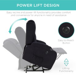 - POWER LIFT DESIGN: Operating this chair is made easy with adjustment functions that work at the push of a button; an easy-to-reach button on the side lets you tilt forward or recline
