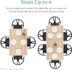Best Choice Products Extendable Dining Table 47 to 63in Modern Large Expanding Kitchen Table up to 6 People w/Leaf Extension, 2 Locks, 132lb Capacity – Natural Oak