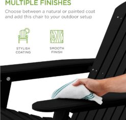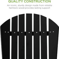 Best Choice Products Folding Adirondack Chair Outdoor Wooden Accent Furniture Fire Pit Lounge Chairs for Yard, Garden, Patio w/ 350lb Weight Capacity – Black