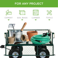Best Choice Products Heavy-Duty Steel Garden Wagon Lawn Utility Cart w/ 400lb Capacity, Removable Sides, Handle – Green