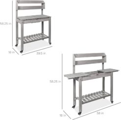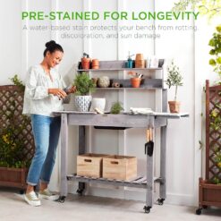 Best Choice Products Mobile Garden Potting Bench, Outdoor Wood Workstation Table w/Sliding Tabletop, 4 Locking Wheels, Food Grade Dry Sink, Storage Shelves – Gray Stain Finish