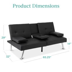Best Choice Products Modern Faux Leather Convertible Futon Sofa w/ Removable Armrests, Metal Legs, 2 Cupholders – Black