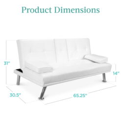 Best Choice Products Modern Faux Leather Convertible Futon Sofa w/ Removable Armrests, Metal Legs, 2 Cupholders – White