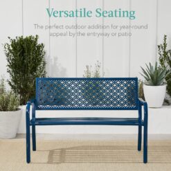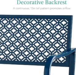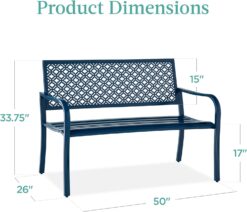 Best Choice Products Outdoor Bench 2-Person Metal Steel Benches Furniture for Garden, Patio, Porch, Entryway w/Geometric Backrest, 790lb Capacity – Peacock Blue