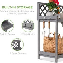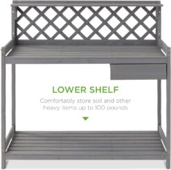 Best Choice Products Outdoor Garden Potting Bench, Wooden Workstation Table w/Cabinet Drawer, Open Shelf, Lower Storage, Lattice Back – Gray
