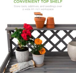 - CONVENIENT TOP SHELF: This potting bench’s open-front shelf is perfect for keeping seedlings, watering cans, and other items close at hand