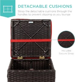 - DETACHABLE CUSHIONS: Thick cushions are made with straps that are secured around the seat top, so you can lounge comfortably and store them away after use