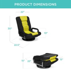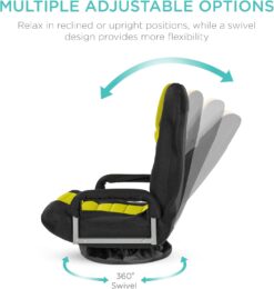 Best Choice Products Swivel Gaming Chair 360 Degree Multipurpose Floor Chair Rocker for TV, Reading, Playing Video Games w/Lumbar Support, Armrest Handles, Adjustable Backrest – Black/Yellow