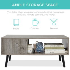 Best Choice Products Wooden Mid-Century Modern Coffee Accent Table Furniture w/ Open Storage Shelf – Gray