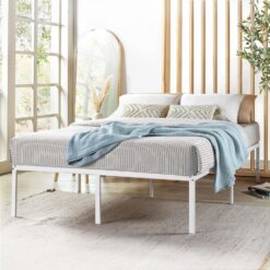 Best Price Mattress 16-inch metal platform bed frame mattress foundation is a complete support system that replaces the need for the traditional box spring. It is constructed with 100% steel to provide maximum support and durability for longer-lasting use. You will find that its multiple points of contact to the floor adds strength, stability and level support. Another feature is the 14 inches of under bed storage space to keep those needed items conveniently stored away. You will have your bed frame in minutes with easy assembly that requires no additional tools. Enjoy a good night’s sleep on our durable and noise-free platform bed frame.