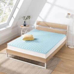 - 2-inch gel-infused memory foam topper with an egg crate design that allows for enhanced airflow