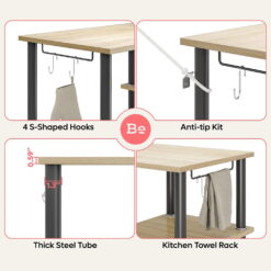- Solid Construction: This kitchen stand is constructed by a high-quality P2 particle board and black metal Frame. It provides more support for your kitchen items’ weight-bearing needs and ensures stability and durability.