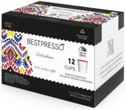 Bestpresso Coffee, Colombian Medium Roast Single Serve K-Cup Pods, 96 Count (Compatible With 2.0 Keurig Brewers) 8 Packs Of 12 Cups