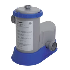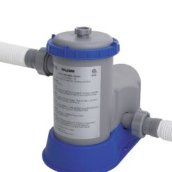 Enjoy the heat of the summer by staying cool when you have the Bestway Steel Pro Frame Swimming Pool & Pump. This complete above-ground pool set is easy to set up and thanks to the rust-resistant steel frame and heavy-duty PVC and polyester 3-ply side walls, you know it’ll last for years to come. You can rest easy knowing your lawn isn’t in danger. The drain valve attaches to a garden hose so you can drain the water away from the pool. This package also contains the Bestway Flow Clear 1500 GPH Above Ground Pool Filter Pump to help keep your pool water clean and clear. This filter pump fits most above-ground pools and includes adaptors for pool valves with an outer diameter of 1.25 inches. With a flow rate of 1,500 gallons per hour and an integrated pool system flow rate of 1,050 gallons per hour, this pump has the power to filter pools up to 8,400 gallons in size. Bestway has made it so easy for you and your family to enjoy summer fun with the Steel Pro Frame Above Ground Swimming Pool and Flowclear Filter Pump.