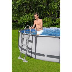It doesn’t get any better than having your own backyard pool. Enjoy a summer full of fun with the Bestway Steel Pro MAX Above Ground Swimming Pool. Featuring an ultra-durable construction, this outdoor swimming pool is made with a corrosion-proof steel frame equipped with a FrameLink System for a sturdy and secure connection. The frame is compatible with additional attachments, such as cup holders (sold separately). With a DuraPlus liner, this pool is reinforced for strength and prevents punctures. Including a filter pump, ladder, and pool cover, you’ll have everything you need for the perfect pool day. Equipped with a simple setup and take-down process, you can easily store this pool away in the off-season. No tools are required, and a hose connects to the built-in flow control valve to quickly and efficiently drain out the pool water. Spend your hot summer days in the water with the Steel Pro MAX Above-Ground Swimming Pool from Bestway. Disclaimer: Please review your HOA rules and restrictions before purchasing this product. Not all housing agencies permit private above-ground pools.