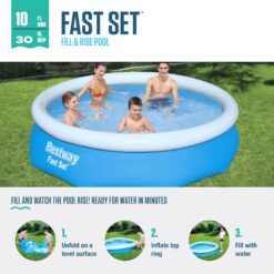 - Kids and adults of all ages can enjoy swimming and splashing in Bestway’s Fast Set Above Ground Pool; It’s the ultimate pool for backyard convenience with minimal setup