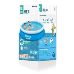 With this quick and easy Bestway® Fast Set™ Pool Set, you’ll be ready for a pool day in no time. The Fill & Rise set-up process is simple–just select a level surface, inflate the top ring and the pool will rise as it’s filled up with water. The sturdy DuraPlus™ liner is made out of an ultra-durable 3-layer material that is reinforced for strength and is 85% more puncture-resistant than PVC. When the season’s over, storage is fast and simple. The water releases easily through the flow control drain valve, and the pool can fold up for compact off-season storage. Also included with the set is a filter pump to help keep the water clean. This pool is the ideal choice for families looking for a quick and easy pool option for their backyard. Kids will enjoy spending their summer days splashing and playing in the water, and parents can enjoy a nice and relaxing dip as well. The season won’t be complete without the convenient Fast Set Pool from Bestway!