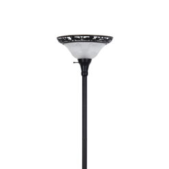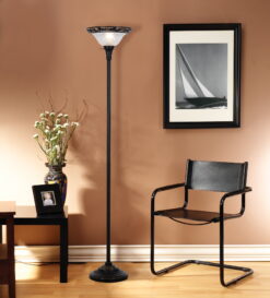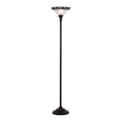 Decorate and illuminate your space with this Better Homes & Gardens Floor Lamp. It adds soft upward ambient lighting and elegant style to almost any room. The metal base of the 70″ floor lamp features graceful Victorian details in a classic satin copper finish that works well in a bedroom, living area or office. It also features a torchiere frosted shade that boasts intricate etching and a decorative metal filigree rim for a beautiful look. The floor lamp with glass shade has an easy-to-reach three-way rotary switch near the shade to turn it on and off with a simple click. It uses just one three-way 150-watt incandescent bulb to give the light needed in the room. Enjoy a classic and modern look combined with this Better Homes & Gardens Floor Lamp.