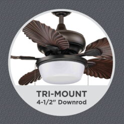 The Better Homes & Gardens Clara 52″ 2 Light, 5 Blade Ceiling Fan in Bronze with Aged Bamboo Blades is the perfect addition to indoor and outdoor urban industrial spaces, serving up both powerful air flow and retro style from its leaf-shaped ABS blades finished in aged bamboo. With three pull-chain adjustable speed settings, this down rod fan is sure to deliver a high quality, quiet performance while saving energy both in the summer and winter months. It is very easy to install and can be mounted on a sloped ceiling. It includes two dimmable LED bulbs for soft illumination through a frosted white shatterproof acrylic shade. This fan’s size makes it a perfect match for any large to medium size indoor or covered outdoor living space such as patios, great rooms and bedrooms. This fan is backed by a limited lifetime warranty.
