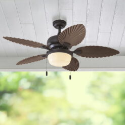 Better Homes & Gardens Clara 52″ Bronze Ceiling Fan, Palm Leaf, 5 Blade, LED Light, Indoor/ Outdoor