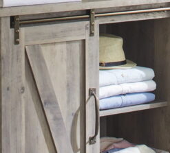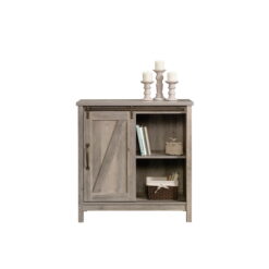 Looking to add a touch of rustic-inspired style to your home? Look no further! This accent storage cabinet from the Better Homes & Gardens modern farmhouse collection is everything you could ever want! It features a barn wood-styled sliding door that easily glides side to side so you can store and display an array of items ranging from your collection of novels and stacks of magazines to knick-knacks and photos of your family and friends. You can display the best and hide the rest! It also features two adjustable shelves that can be moved to different heights to create flexible options for items of all shapes and sizes. Its spacious top surface makes a great place to display additional home decor items or set your 39″ TV so you can enjoy all your favorite shows and movies. Finished in rustic gray and detailed with stylish hardware and accents, this beautiful storage cabinet is just what your home needs.