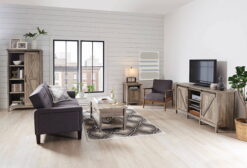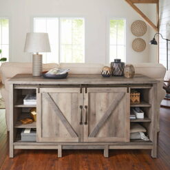 Is your home decor beginning to look a little boring and bland? Give it an upgrade with the rustic charm and unique design of this entertainment credenza from the Better Homes and Gardens Modern Farmhouse collection. It accommodates up to a 70? TV, making it the perfect spot to cozy up and gather around for all-day movie marathons with your family or endless hours of video games with your friends. Display the best, forget the rest – just slide one of the two country-inspired barn doors over! It features six adjustable shelves that have the ability to move to different heights to create flexible storage and display options for items off all shapes and sizes. Find room for anything from video and gaming equipment to knick-knacks and home decor items. You’ll have space for it all! It also includes cord management through the enclosed back panel so you can keep all your wires neat and out of sight. Finished in Rustic Gray and detailed with beautiful hardware, this handsome entertainment credenza will be the highlight of your home.