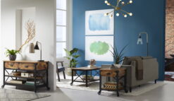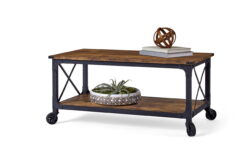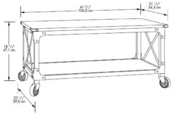 Add an element of country living to your home with the Better Homes & Gardens rustic country coffee table in an antiqued black and weathered pine finish. It is designed to add some rustic charm with an industrial touch to your home, its details lend the charm of a well-loved antique. A mixed material aesthetic combines textured black powder-coated metal framing, bent corner accents, and fixed wheels with a weathered pine finish. This coffee table can also function as a tv stand and will accommodate most 42″ flat-panel TVs weighing up to 70 lbs. Place it in your living room, apartment or dorm room for a striking lift. Make this multi-functional coffee table your at-home, country-inspired retreat, any day of the week. This Better Homes & Gardens coffee table/tv stand measures 41.339 long, 23.504 wide, and 18.504 tall.